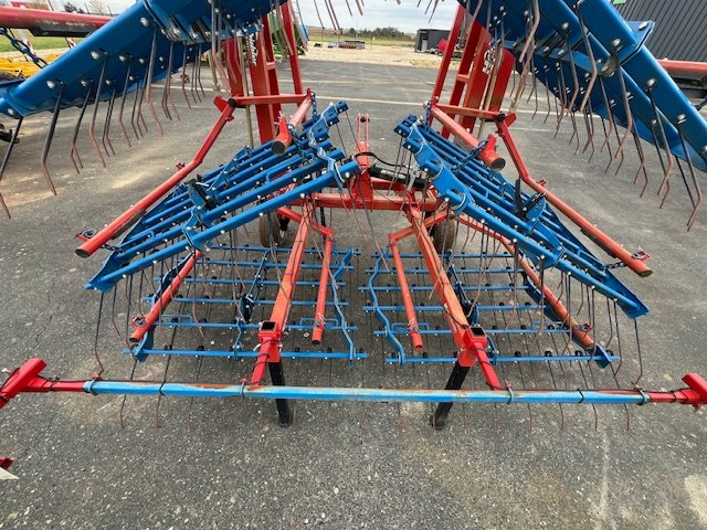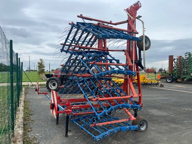Herse étrille HATZENBICHLER - de 2018 - 12 mètres de largeur de travail - 6 rangées de dents - 8 panneaux - repliage hydraulique - 4 roues de jauges 18.5/8.5R8 - signalisation - réglage manuel de la profondeur - béquille de dépose - attelage 3 points