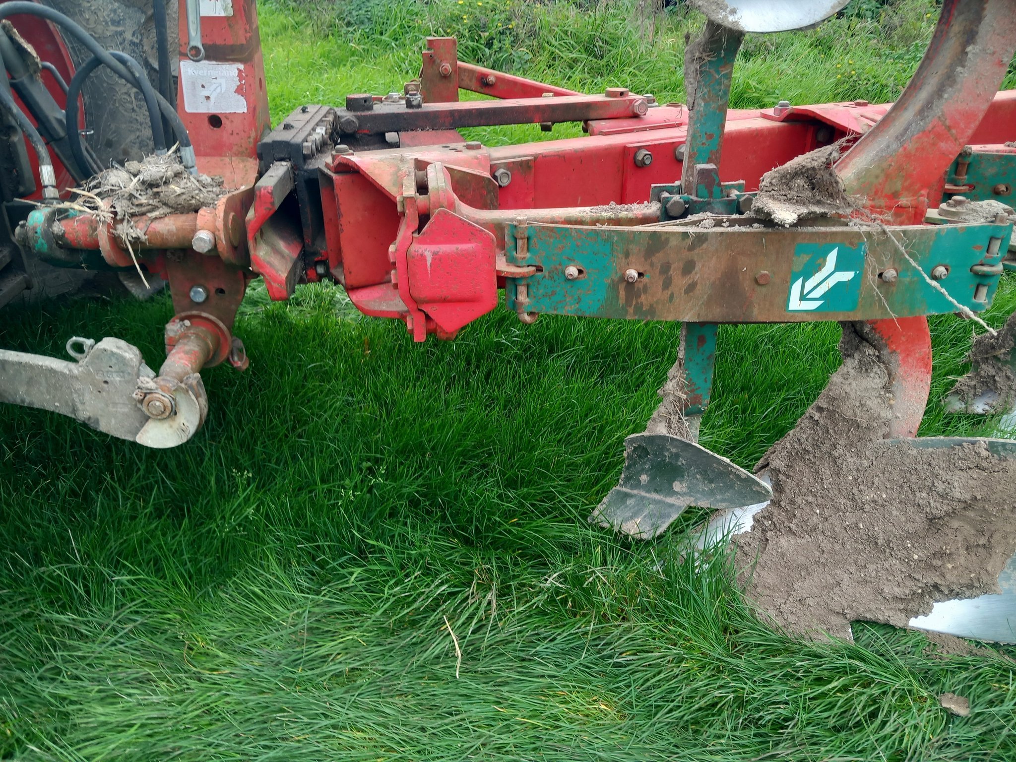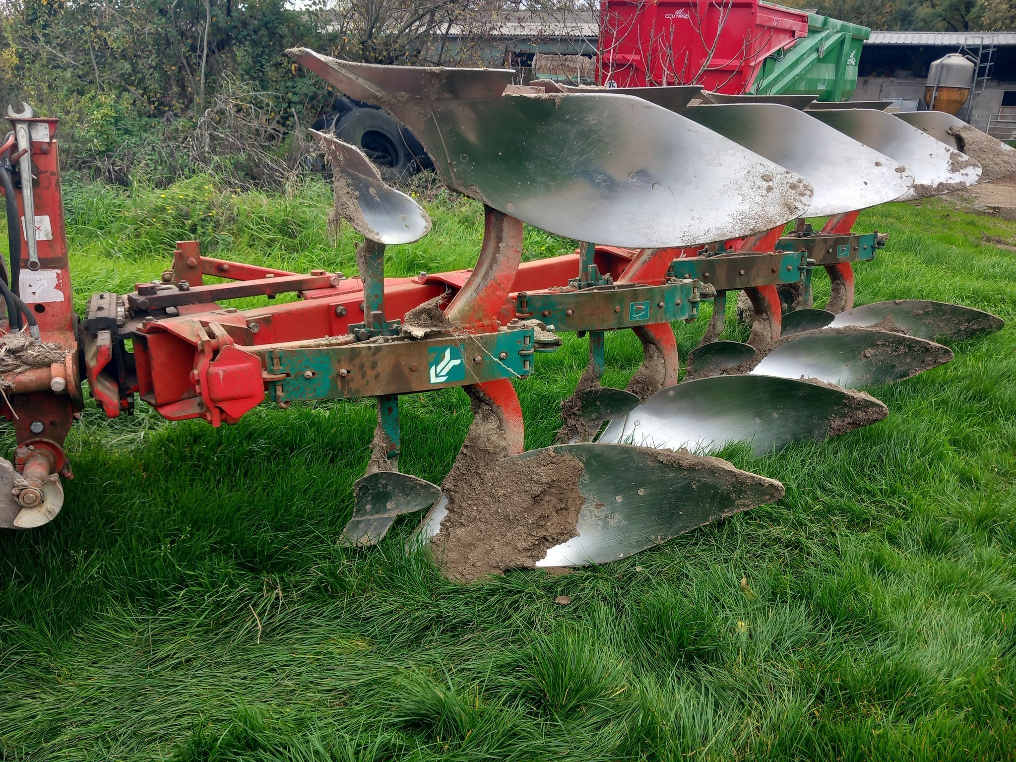 Charrue réversible KVERNELAND ED100-160 - de 2001 - 4 corps - sécurité non stop mécanique - 1 roue - état moyen - attelage 3 points
