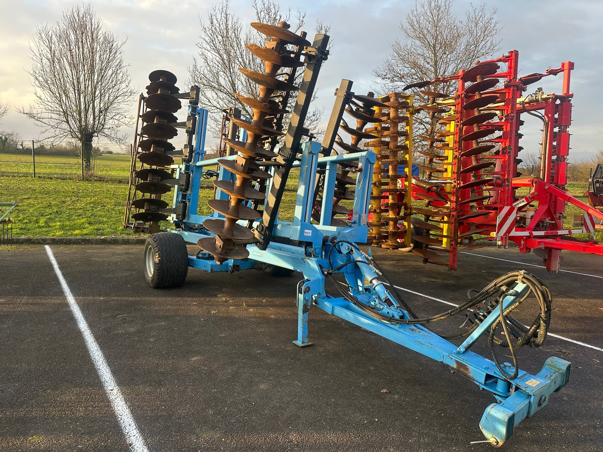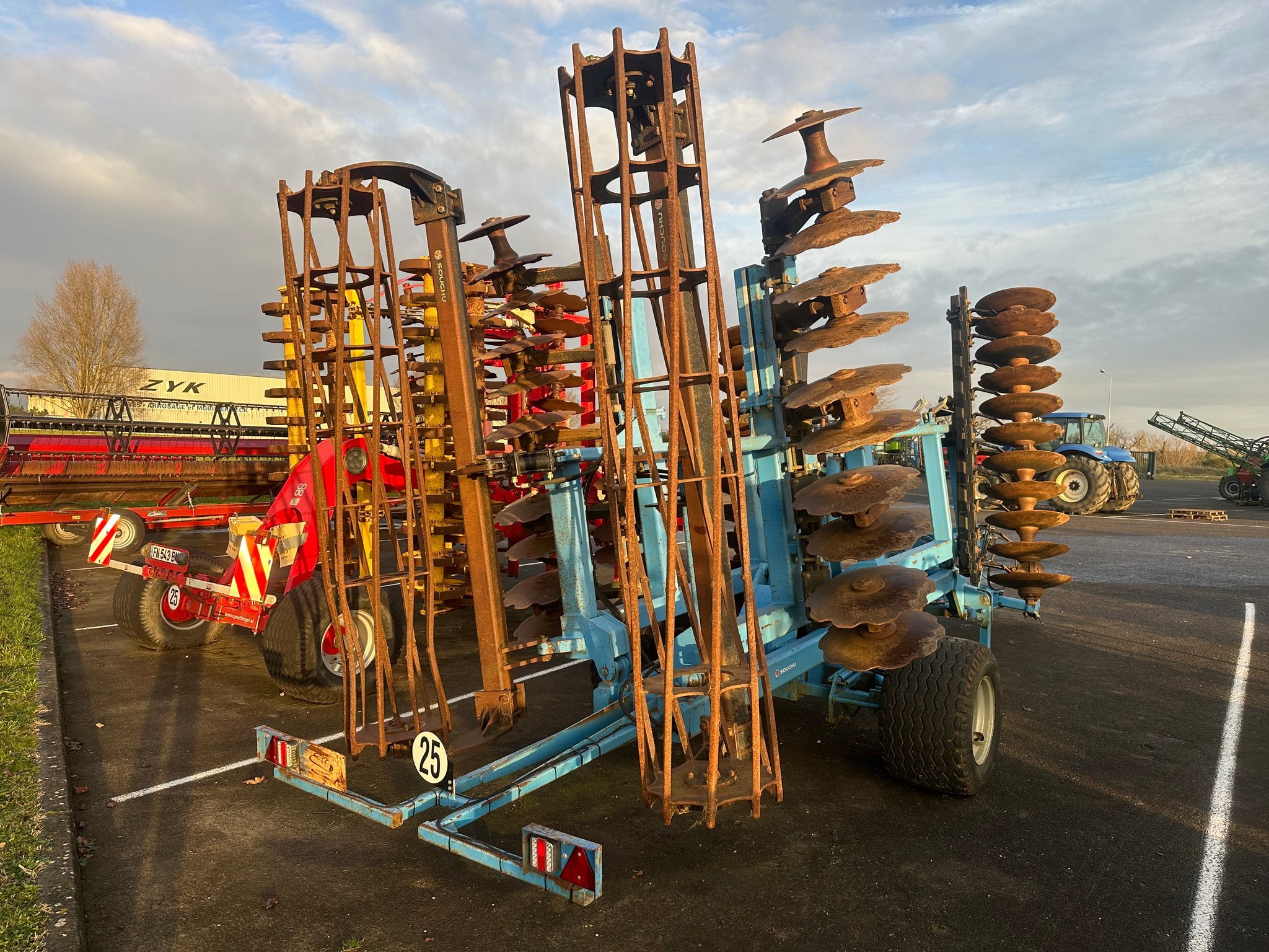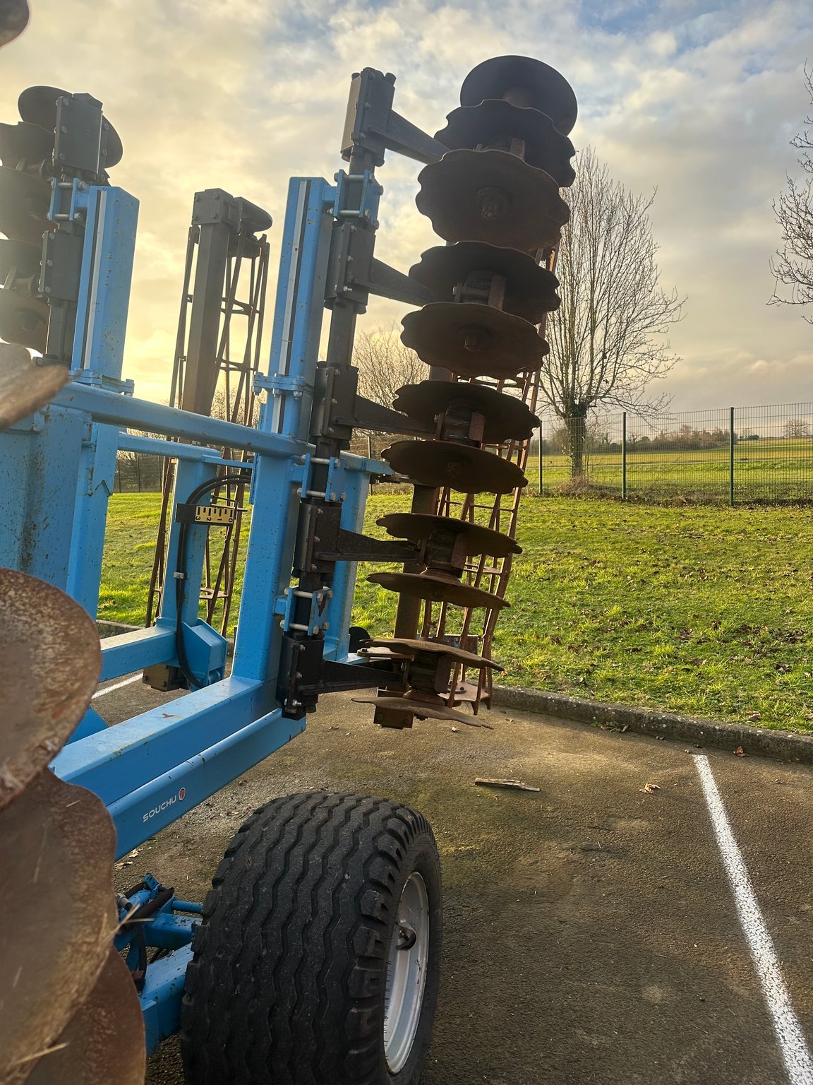 Cover-crop SOUCHU PINET FOXR MK - de 2011 - 44 disques - 1 rangée de disques indépendants - rouleau barre arrière - repliage vertical - attelage sur bras de relevage