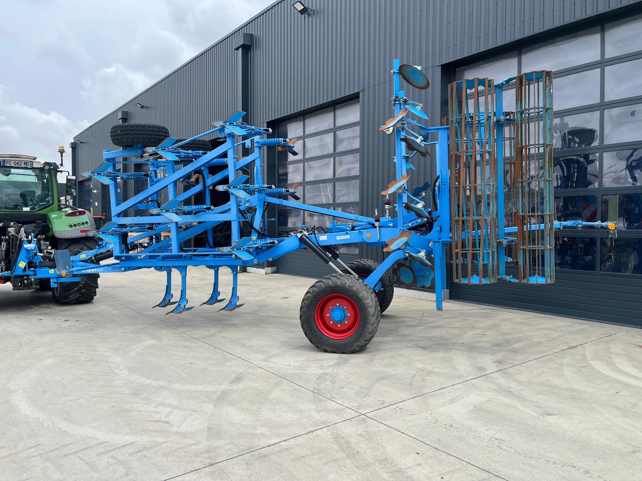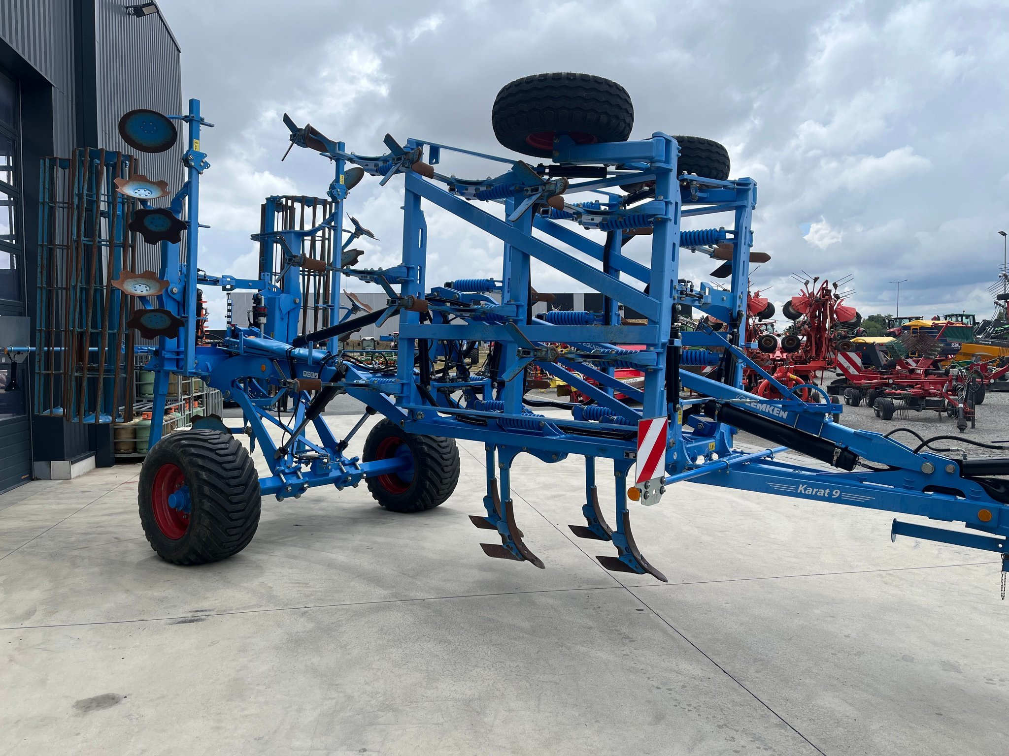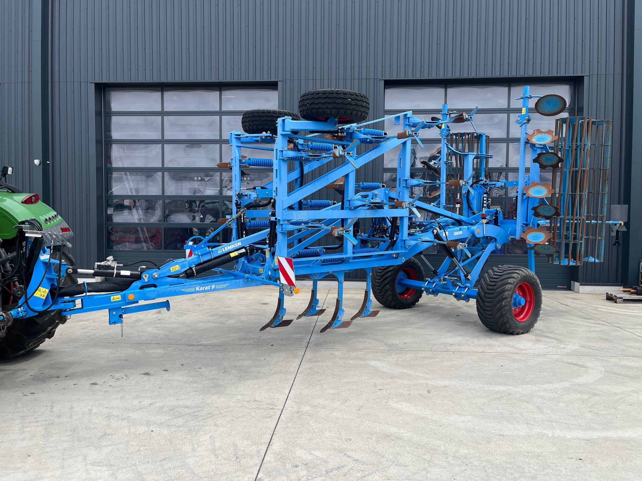 Déchaumeur à dents LEMKEN KARAT 9/500 KUA - de 2022 - 5 mètres de largeur de travail - sécurité non stop mécanique - démontage rapide des socs - report de charge sur chappe d'attelage - réglage hydraulique de la profondeur de travail - freinage de l'essieu - pneus 550/45-15.3 - disques mélangeurs avec disques de bordure - double rouleau arrière tube/fer plat