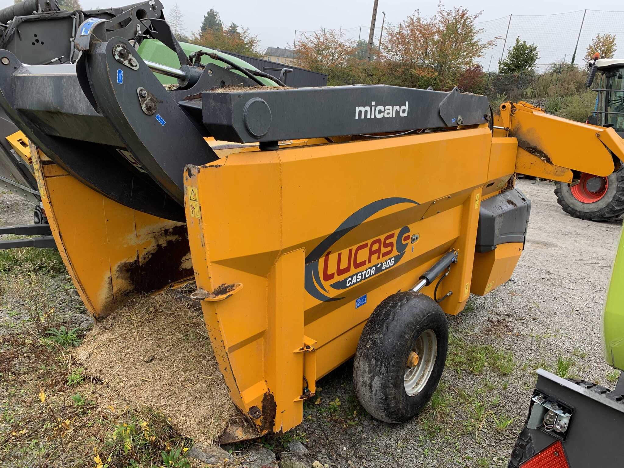 Désileuse pailleuse LUCAS G CASTOR + G60 - de 2014 - 6 m3 de capacité - goulotte universelle - simple démêleur - griffe de chargement arrière - attelage sur bras de relevage - joystick de commande en cabine - pneus 11.5/80R15.3