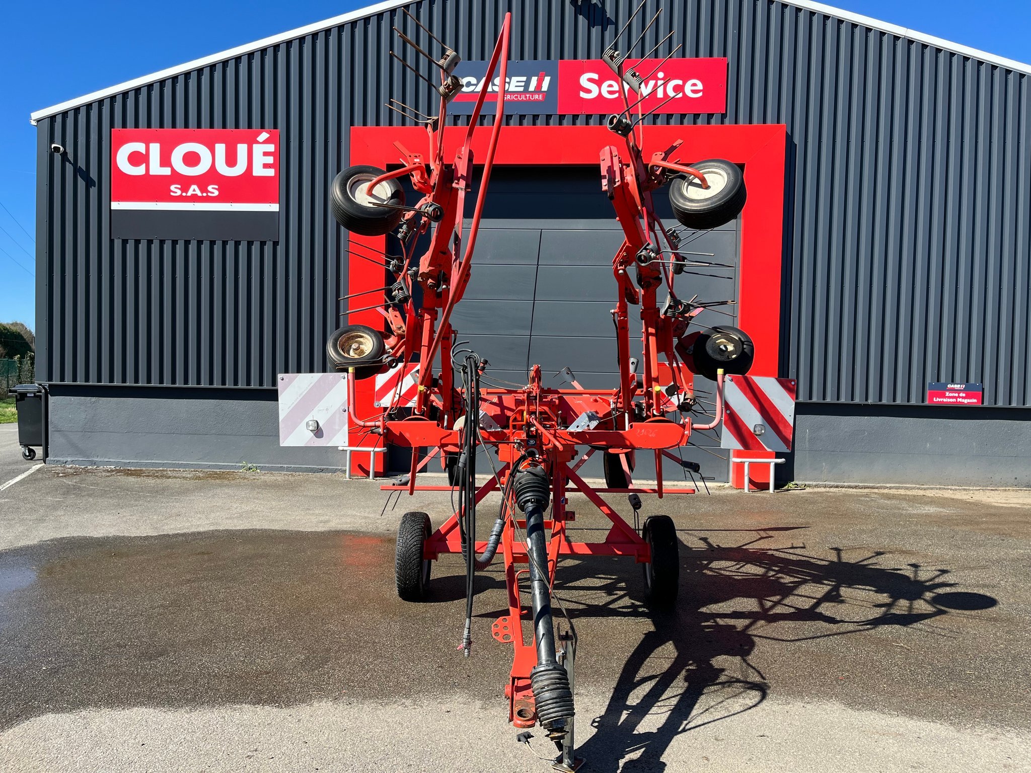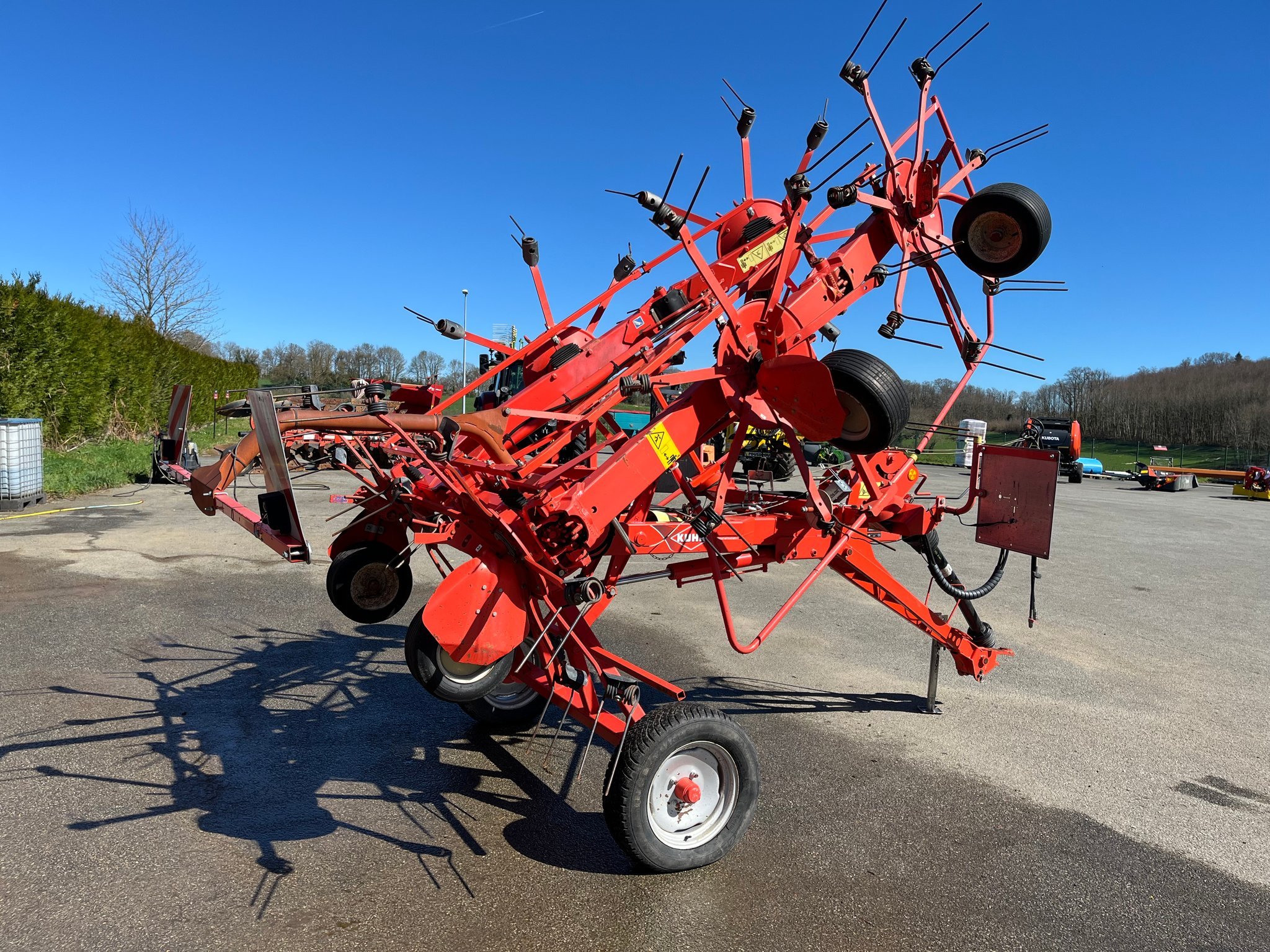 Faneuse KUHN GF7802T - de 2009 - 7.80 mètres de larguer - repliage hydraulique - 6 toupies - 7 bras par toupies - 4 roues de jauges - sans mise en oblique - réglage mécanique - signalisation - éclairages à revoir - pneus 195/65R15