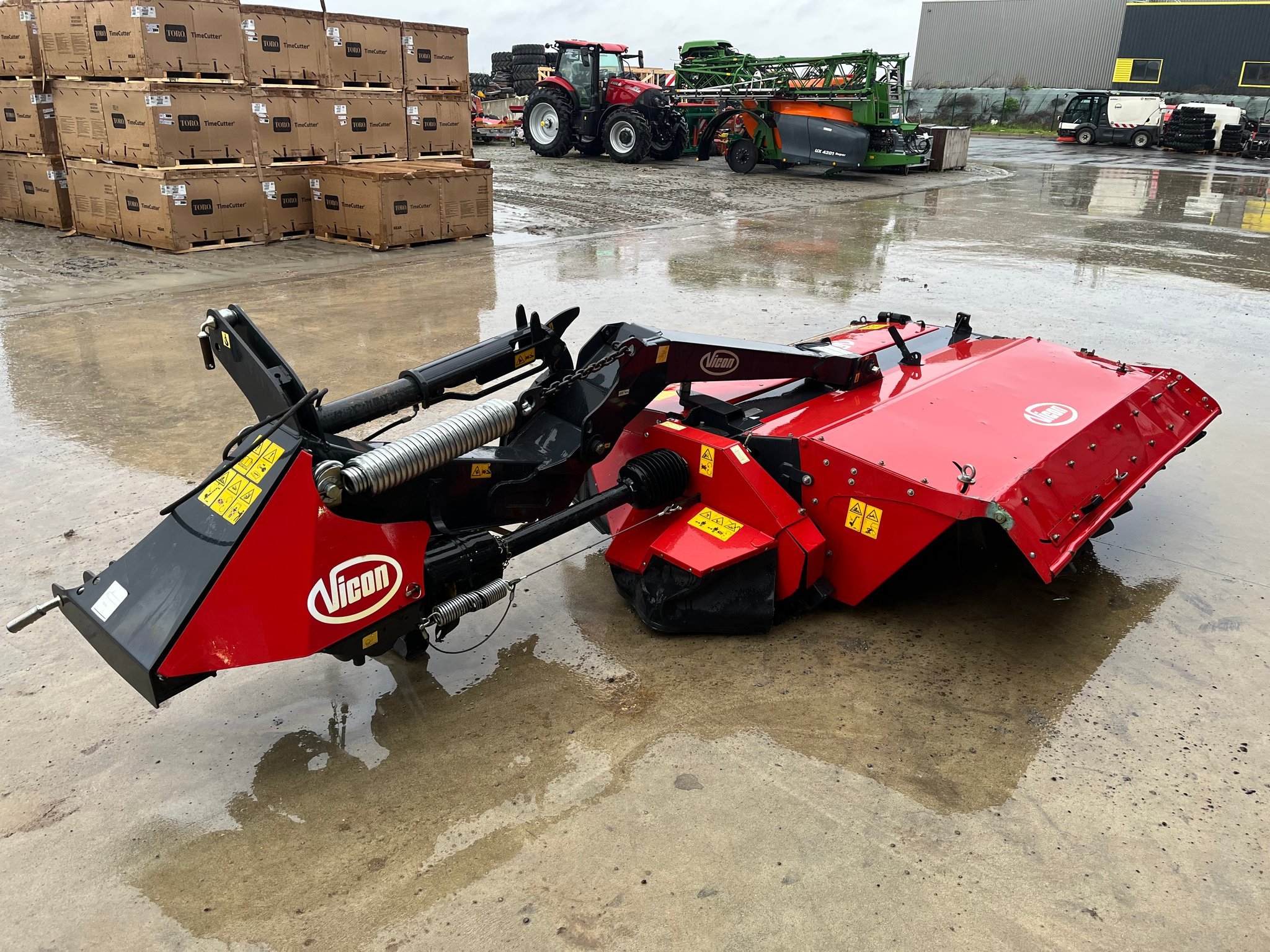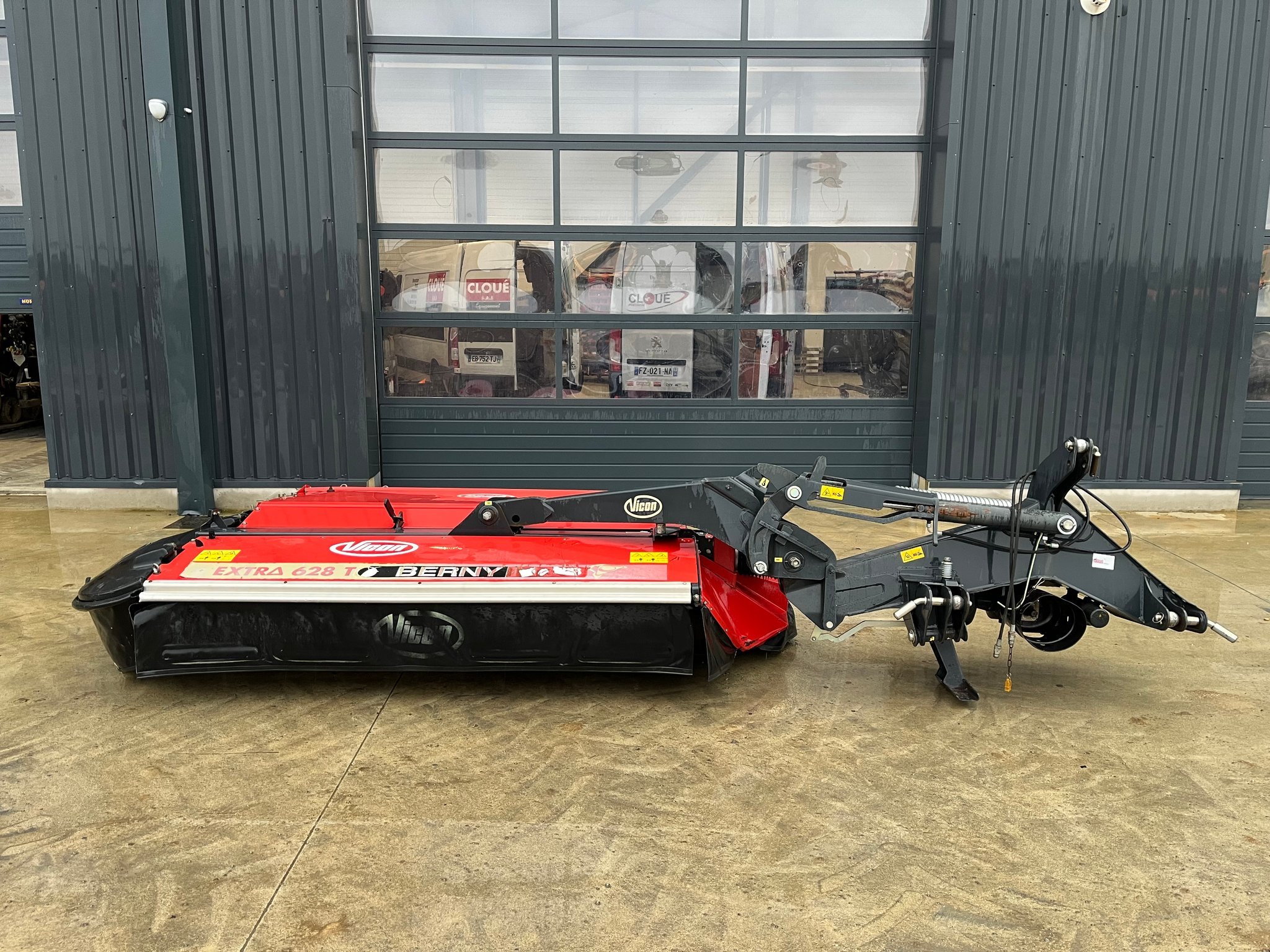 Faucheuse conditionneuse VICON EXTRA 628 T - de 2016 - 2.80 mètres de largeur de coupe - 8 assiettes - conditionneur à fléaux plastiques - suspension de lamier mécanique - patins de coupe haute - bâche - repliage hydraulique - béquille de dépose - attelage 3 points