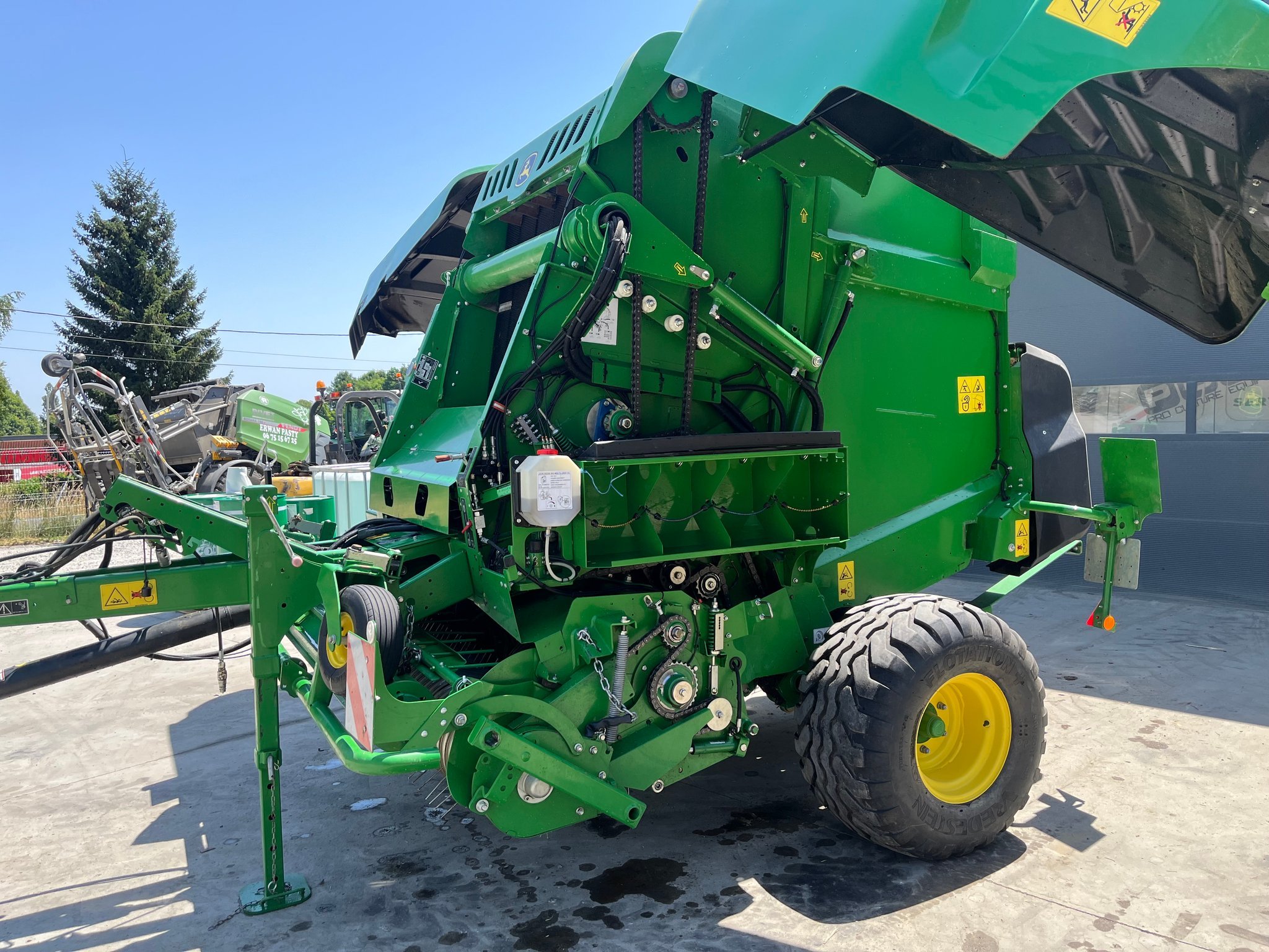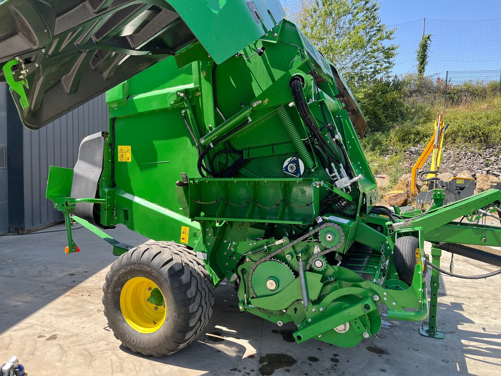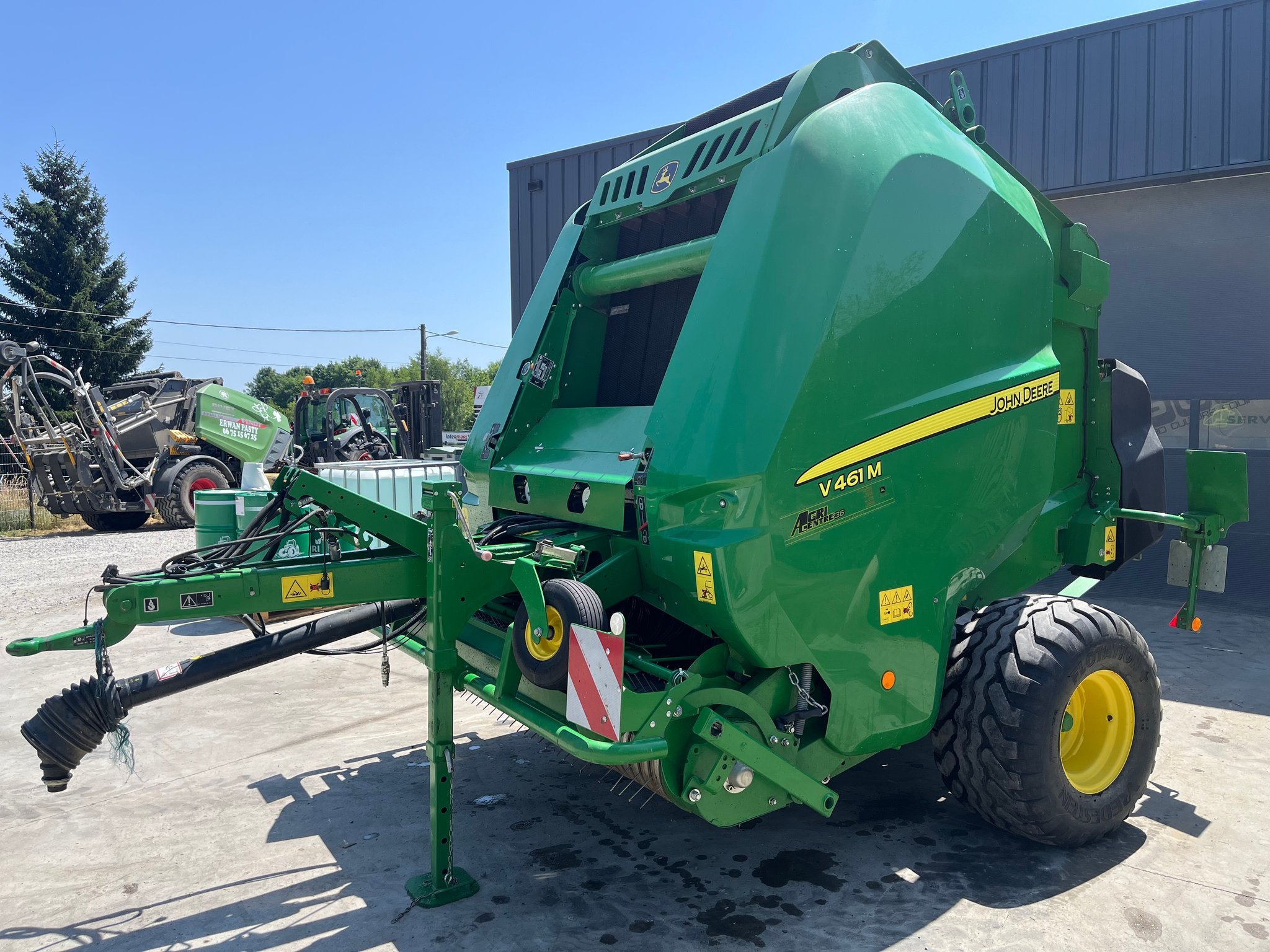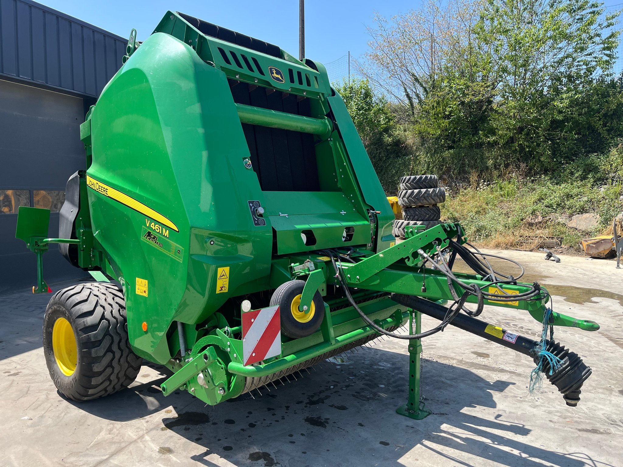 Presse à balles rondes JOHN DEERE V461M - de 2019 - 12000 bottes environ - liage mixte filet/ficelle - ameneur rotatif - rouleau tasse andain graissage centralisé - 13 couteaux - éjecteur de balles - trappe de débourrage - roues de pick-up pivotantes - boitier en cabine - attelage haut - pneus 500/50R17