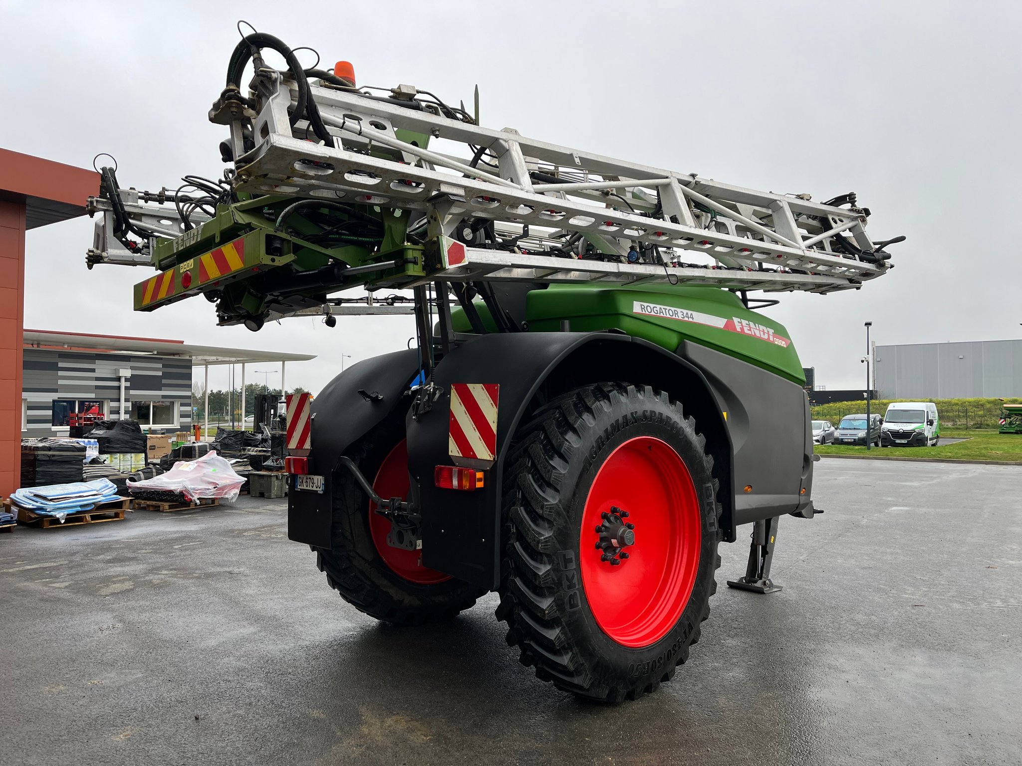 Pulvérisateur FENDT ROGATOR 344 - de 2022 - 4400 litres de capacité - 36 mètres de largeur de travail - 7 tronçons - freinage hydraulique pneumatique - rampe alu - circulation continue - correcteur de devers - géométrie variable - régulation DPAE - coupure buse par buse - sans boîtier compatible Isobus - attelage bas - béquille hydraulique - pneus 480/80R50