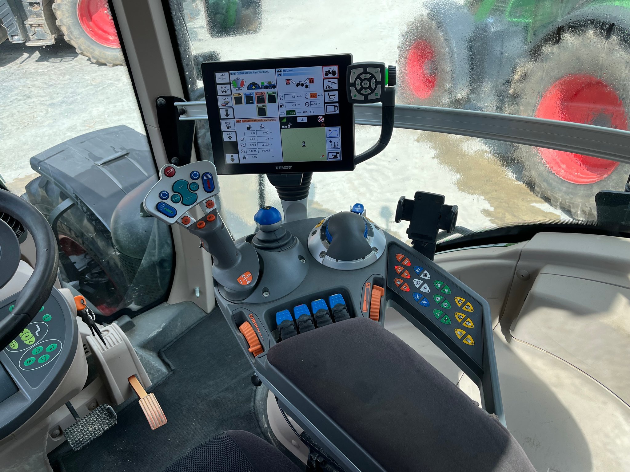 Tracteur FENDT 824 ProfiPlus - de 2021 - 3550 heures - pont avant et cabine suspendus - transmission à variation continue 50km/h - freinage mixte hydraulique et pneumatique - autoguidage TRIMBLE RTX - variogrip - 4DE hydraulique arrière - masses de roues - pneus 600/70R30 et 710/70R42