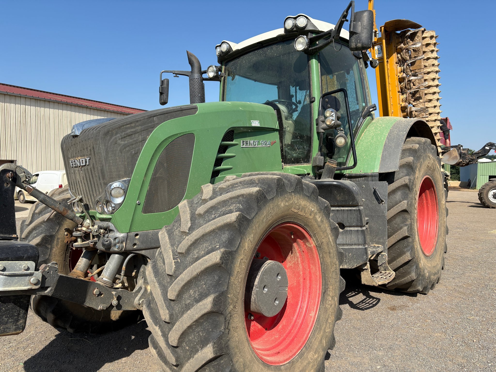 Tracteur FENDT 924 VARIO TMS - de 2007 - 12500 heures prévisionnelles - pont avant et cabine suspendus - relevage avant - transmission à variation continue - 3DE hydraulique arrière - cabine climatisée - freinage hydraulique - pneus 600/65R34 et 800/70R38
