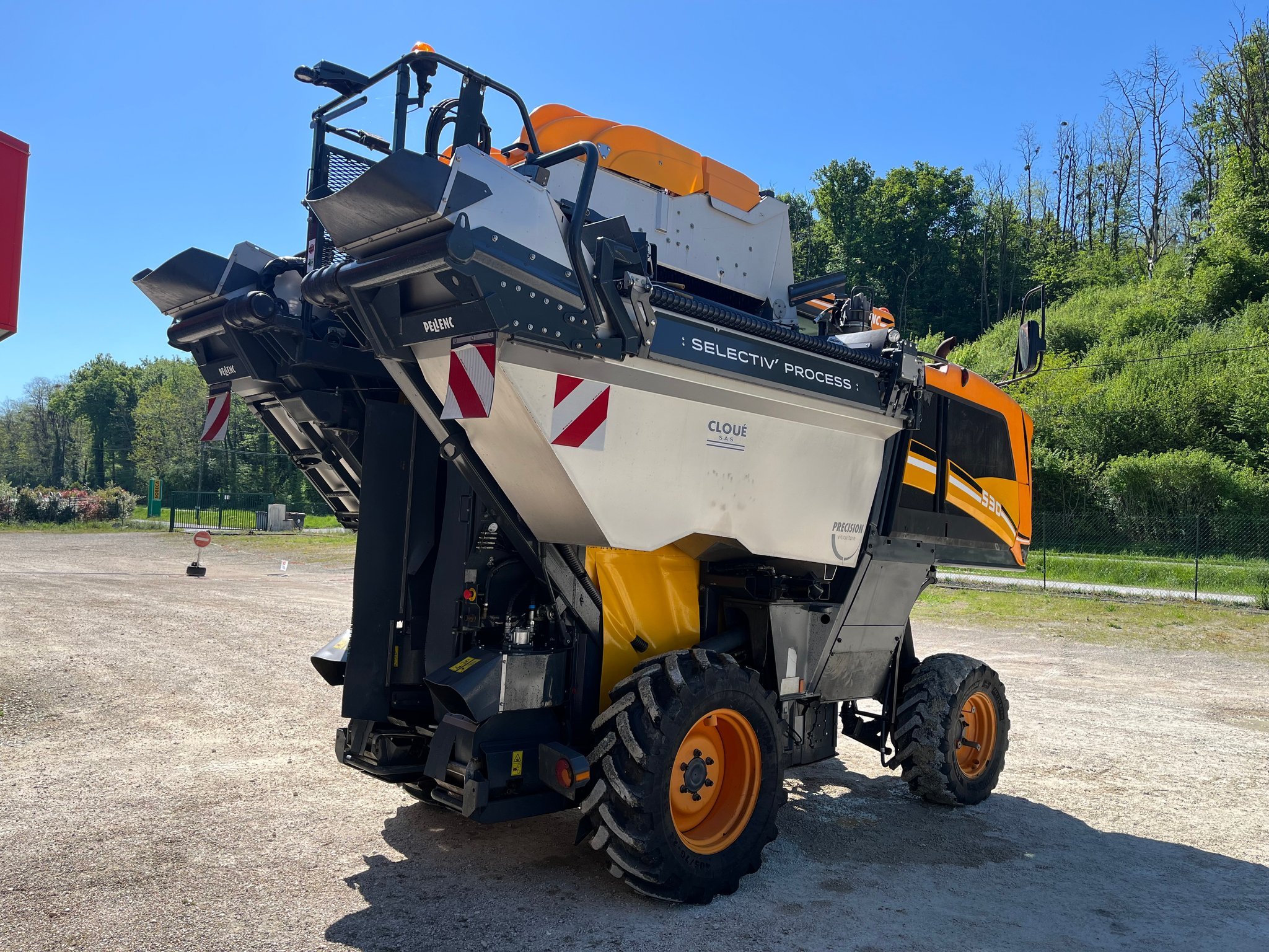 Porteur seul PELLENC OPTIMUM 530 - de 2014 - 2395 heures moteur - cabine climatisée - moteur perkins - terminal de commande tactile - pneus avant 340/80R20 et pneus arrière 320/85R32 - tête de récolte SELECTIV PROCESS 2 - de 2017 - 330 heures