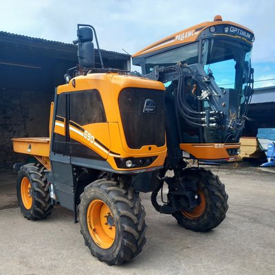 Porteur PELLENC OPTIMUM 690 - de 2015 - 3800 heures moteur - avec tête de récolte PELLENC EASY SMART M SP2 - de 2015 - 760 heures de récolte - bennes 1500 litres de capacité avec vis - aspirateurs supérieurs - répartiteur table de tri - indicateur de niveau de bennes - commande déportées de lavage - assistance au ralentissement - caméra - 2 phares à LED - pneus avant 380/70R24 et arrière 400/70R24