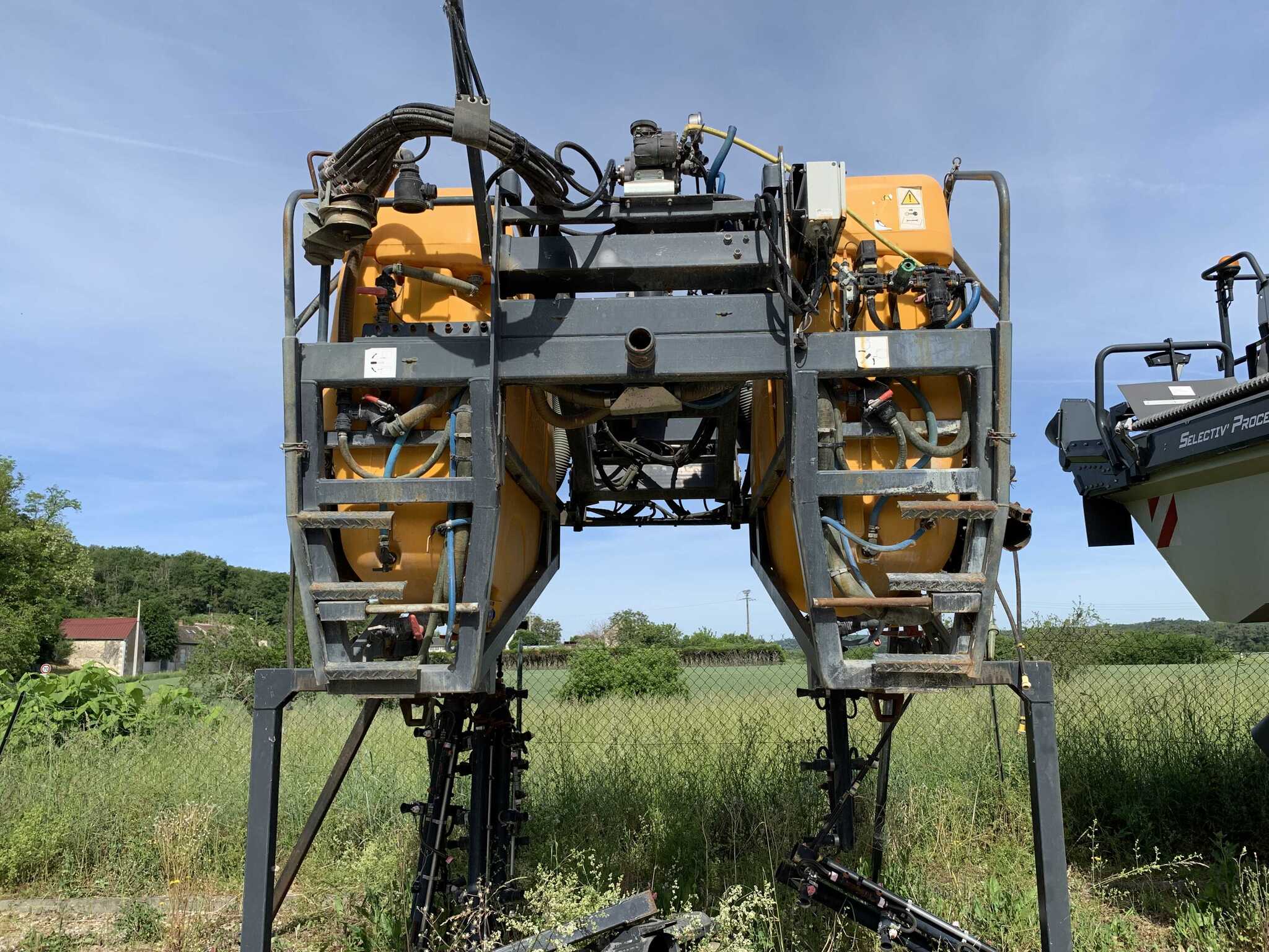 Pulvérisateur viticole PELLENC EOLE 6 RANGS - de 2015 - 6 descentes - 4 diffuseurs en jets portés - châssis avec béquille - 2 cuves de 1000 litres avec une sur cuve de rinçage 100 litres de capacité - indicateur du niveau de cuve - affichage digital - bras de relevage hydraulique - dévers hydraulique repliage et écartement automatique des 2 portiques extérieurs - coupure par électrovanne de la pulvé rang par rang